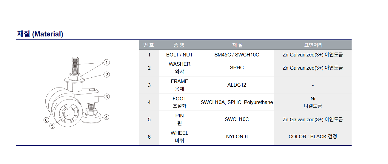 제품소개 제품소개 ADJUST LEVELER Download(2D/3D) WCT-400S #RoHS #REACH 소재Material 몸체 : 알루미늄 다이캐스팅(ADC12) 표면처리Finish 몸체 : 아연도금 제품설명ProductInfo 특징 저상형 이동과,고정이 용이함 용도 통신기기, 금융기기 제품 세부 정보
